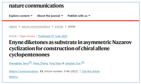 手性環(huán)戊烯酮骨架廣泛存在天然產(chǎn)物及藥物分子中。不對稱催化Nazarovcyclization反應(yīng)是目前公認(rèn)的構(gòu)建手性環(huán)戊烯酮最高效、最便捷的方法。然而,目前發(fā)展成熟的Nazarov反應(yīng)底物種類非常有限。底物種類的局限,進而限制了手性環(huán)戊烯酮的多樣性開發(fā)。因此,探索和開發(fā)新型的Nazarov反應(yīng)底物具有重要意義。