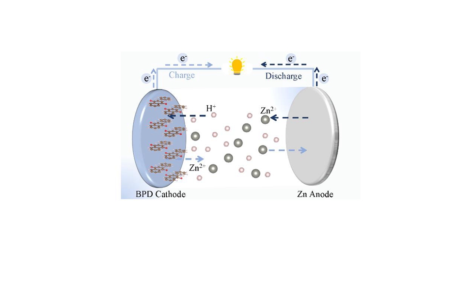 有機陰極材料由于其可設(shè)計的分子結(jié)構(gòu)和不同的氧化還原基團而被廣泛用于水性鋅離子電池(ZIB)。由于最大化每分子量氧化還原活性基團的數(shù)量是增加電極材料理論比容量的一種有前途的方法,因此設(shè)計和合成具有豐富氧化還原基團的低分子量和高穩(wěn)定性陰極材料非常重要。我院曹劍瑜-許娟團隊報道了一種新的π-共軛N-雜環(huán)化合物陰極材料——苯并[b]吩嗪-6,11-二酮(BPD),它將醌與吩嗪作為雙氧化還原活性部分結(jié)合。BPD陰極充分利用了氧化還原活性中心(100%的容量利用率),表現(xiàn)出較高的比容量和能量密度。同時,通過原位表征、電化學(xué)實驗和DFT計算研究了BPD在充放電過程中的電荷存儲機制,并解釋了對完美四電子轉(zhuǎn)移的理解。