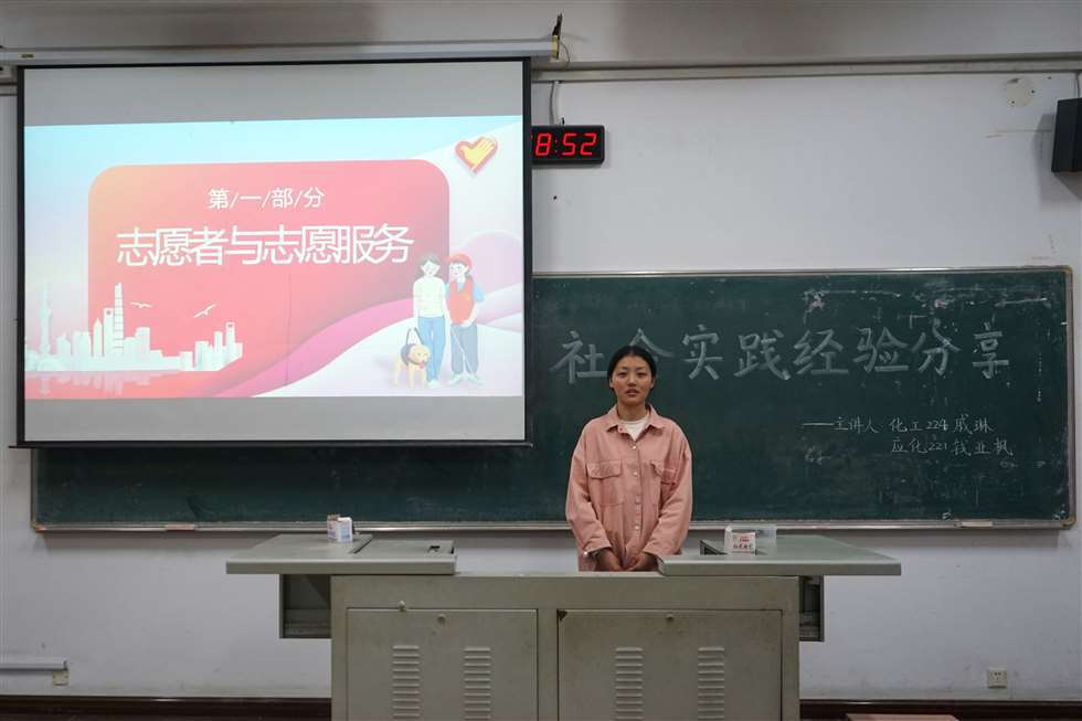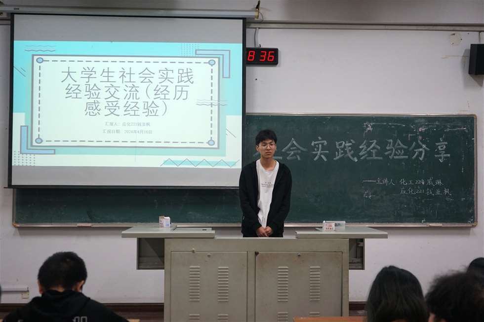 為增進學(xué)生對于社會實踐的了解,激發(fā)學(xué)生的社會實踐熱情,營造學(xué)院學(xué)生積極參與社會實踐的氛圍,我院于4月16日在w1201舉辦“石化青年說”系列講座——社會實踐經(jīng)驗交流。本次講座由化工224班戚琳、應(yīng)化221班錢亞楓主講,各年級學(xué)生代表參加。