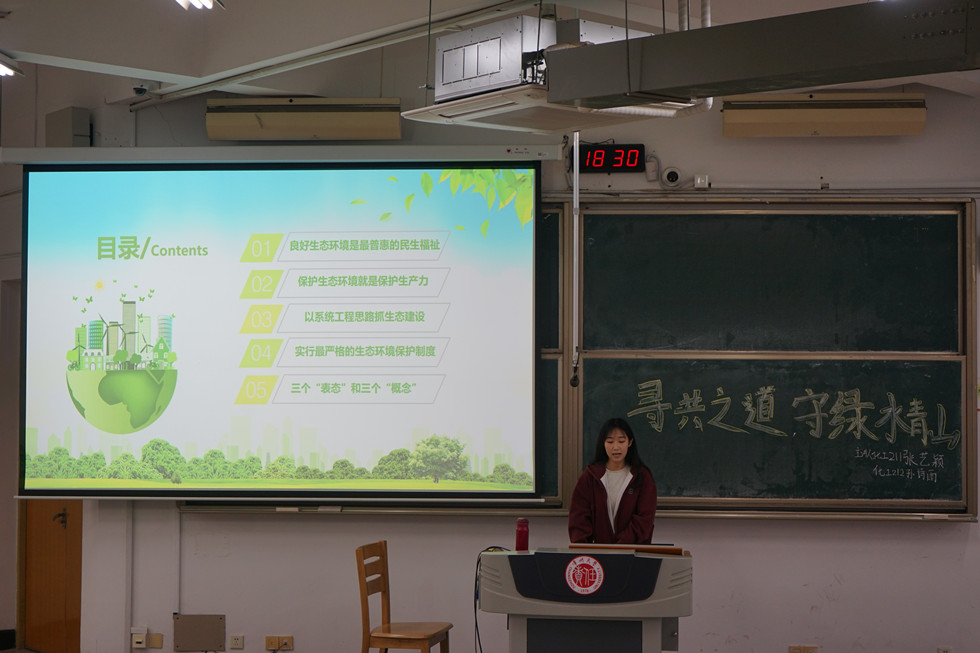 為弘揚生態(tài)文明理念,建設綠色家園,我院于4月24日在W20舉辦“青年講師團”系列講座——“尋共存之道,守綠水青山”。本次講座由我院學生第一黨支部黨員張藝穎、孫詩雨主講,各年級學生代表參加。