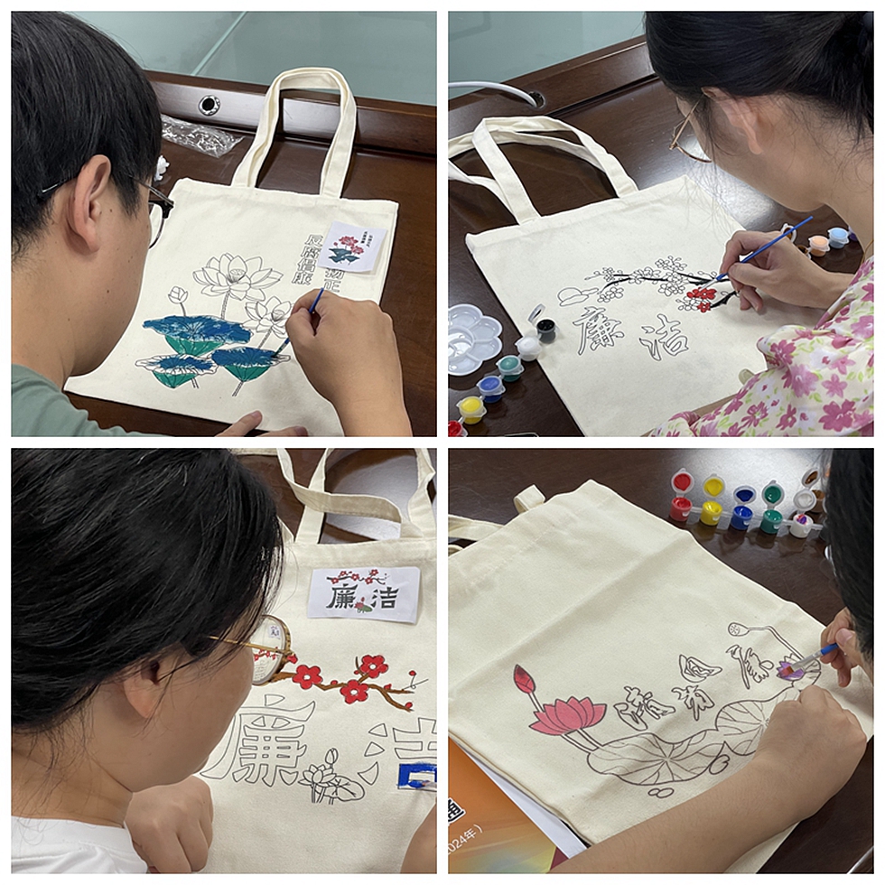 活動(dòng)現(xiàn)場,大家拿起畫筆將自己對“廉潔”的領(lǐng)悟繪制在白色帆布袋上,在一筆一畫的描摹中傳遞清風(fēng)正氣,在大家的巧手描繪下,白色普通帆布包變成了獨(dú)具特色的廉潔文化“藝術(shù)品”,業(yè)緒華希望大家筑牢廉潔思想防線,融廉于心、倡廉于行、寓廉于常,讓“學(xué)廉、悟廉、踐廉”始終貫穿于工作和生活。