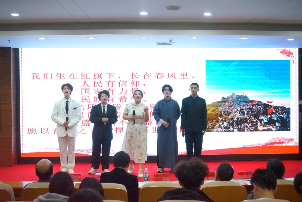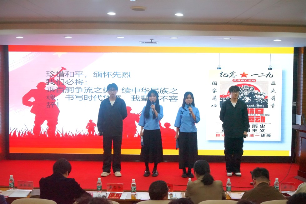 全校共44支隊伍參加本次比賽,經初賽選拔,最終12支隊伍脫穎而出進入決賽。各組選手以多元化的形式,從不同角度切入主題,講述了黃文秀女士、秋瑾女士、劉伯承先生等先烈的故事,贊揚了眾多勤勉為民、無私奉獻的英雄豪杰。他們通過精彩的演繹,重現護國佑民的歷史場景,表達了對先輩精神的致敬與傳承,闡釋了“鑄牢民族之魂,凝聚青春力量”的文化深意,發(fā)出鏗鏘有力的時代之聲,現場觀眾感同身受。