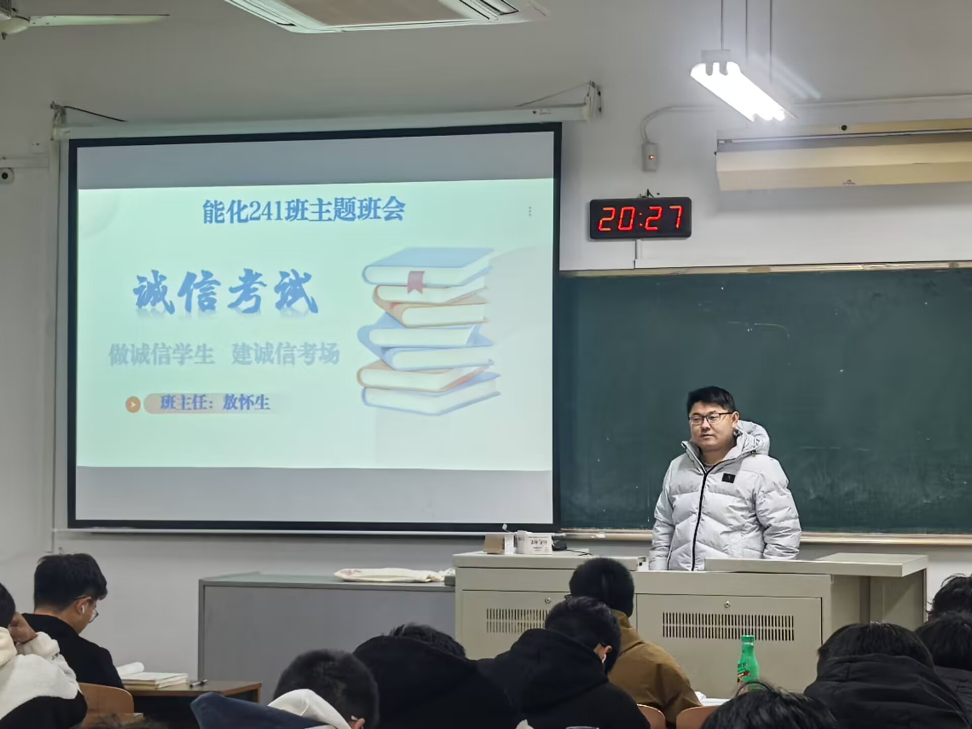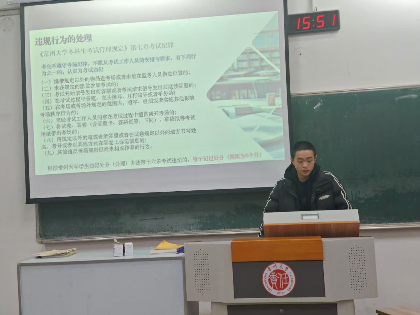 各班班會主講人帶領(lǐng)班級同學(xué)系統(tǒng)學(xué)習(xí)了《國家教育考試違規(guī)處理辦法》、《常州大學(xué)本科生考試管理規(guī)定》以及《常州大學(xué)學(xué)生違紀(jì)處分(處理)辦法》,并結(jié)合數(shù)起考試作弊案例闡述了誠信的重要性,以及因誠信缺失所帶來的嚴(yán)重后果,警示同學(xué)們在考試過程中必須堅守誠信原則,要嚴(yán)格遵守各項規(guī)章制度。班會最后,各班班長帶領(lǐng)班級同學(xué)簽下誠信考試承諾書,同學(xué)們莊重承諾,會以誠實守信的態(tài)度對待每一場考試,展現(xiàn)出優(yōu)良的考風(fēng)考紀(jì)。