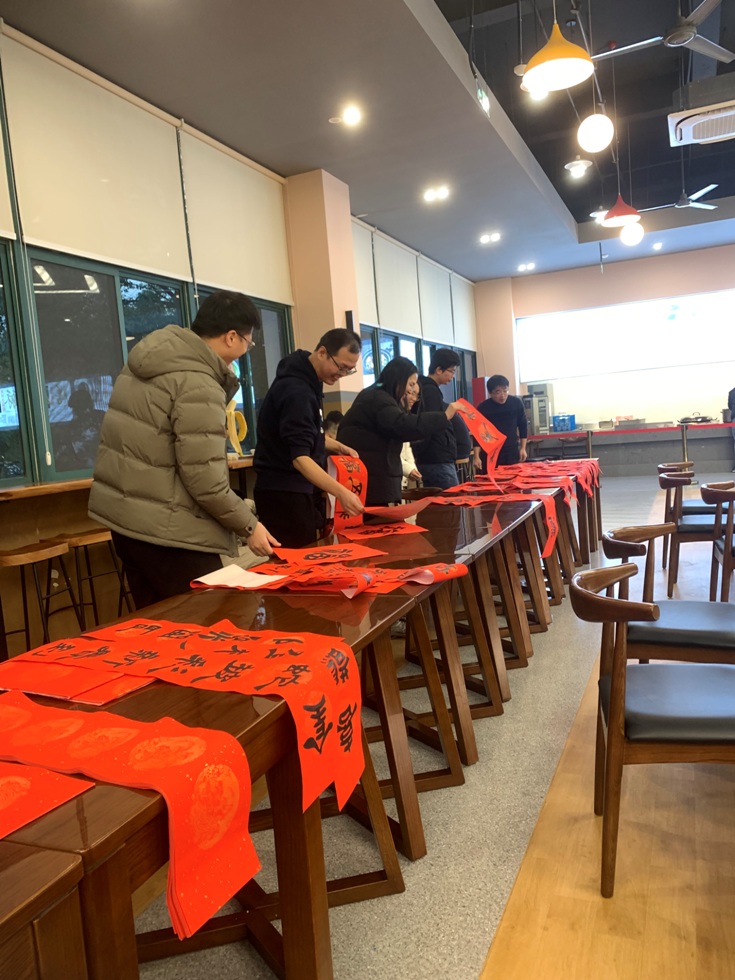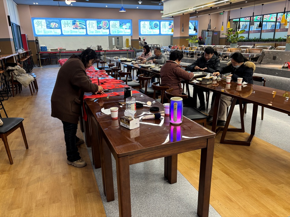 活動現(xiàn)場,董燕敏老師為在場教職工現(xiàn)場寫春聯(lián)、送“?!弊?,一幅幅濃濃年味的喜慶“春聯(lián)”和“?!弊?,還未晾干,就被熱情的職工們“一搶而空”。