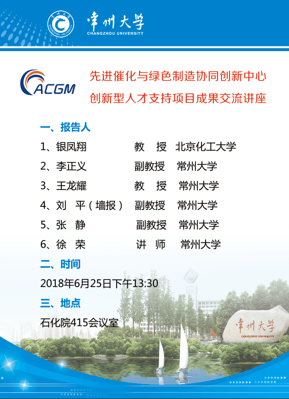 | 【學(xué)術(shù)】江蘇省先進(jìn)催化與綠色制造協(xié)同創(chuàng)新中心創(chuàng)新型人才支持項(xiàng)目(一期)匯報(bào)會(huì) |