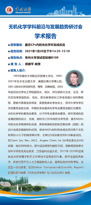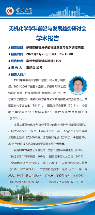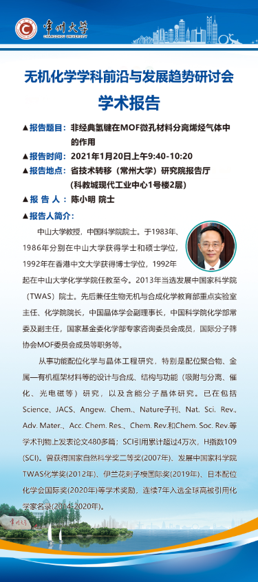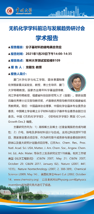 | 【學(xué)術(shù)報告】1月20日無機化學(xué)學(xué)科前沿與發(fā)展趨勢研討會學(xué)術(shù)報告 |