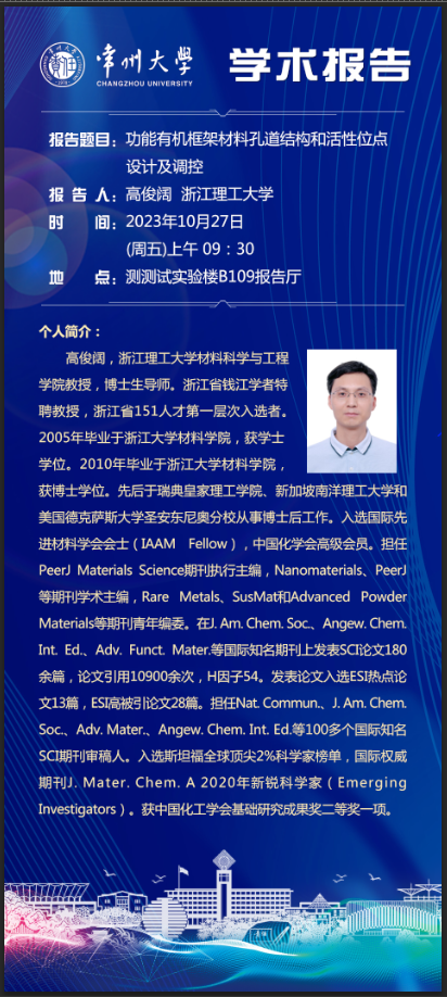 【學術報告】10月27日學術報告——高俊闊教授,浙江理工大學