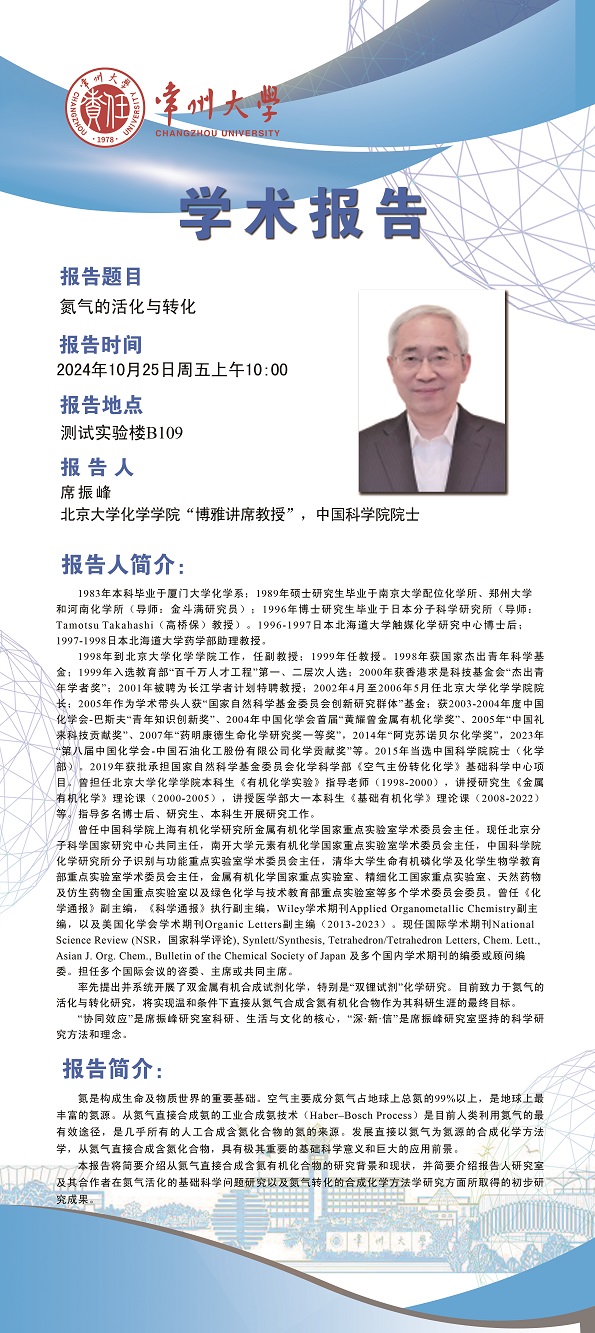 【學(xué)術(shù)報(bào)告】10月25日學(xué)術(shù)報(bào)告—席振峰院士