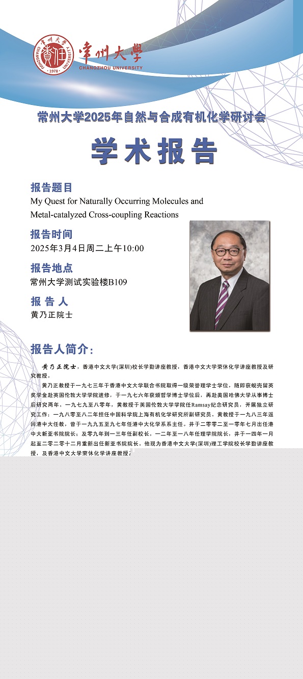 【學術報告】3月4日學術報告—黃乃正院士 香港中文大學