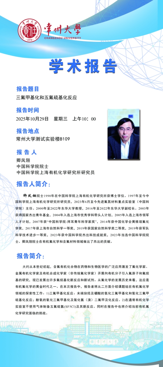 | 【學(xué)術(shù)報告】10月29日自然與合成有機化學(xué)研究院學(xué)術(shù)報告——卿鳳翎院士 中國科學(xué)院 |