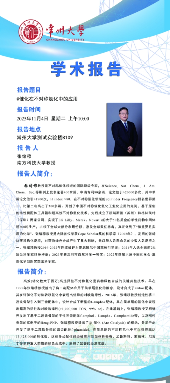 | 【學(xué)術(shù)報告】11月4日自然與合成有機化學(xué)研究院學(xué)術(shù)報告——張緒穆教授 南方科技大學(xué) |