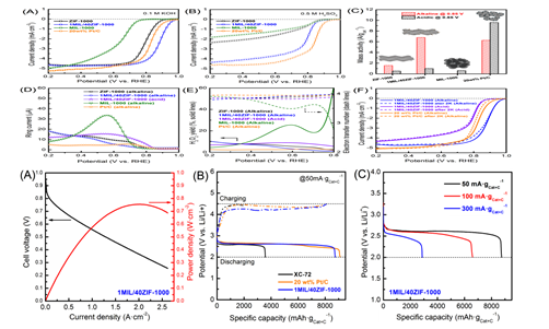近日,銀鳳翔-陳標(biāo)華課題組在材料與化學(xué)國際頂級刊物Advanced Functional Materials上發(fā)表題為“Engineering Fe-Fe3C@Fe-N-C Active Sites and Hybrid Structures from Dual Metal-Organic Frameworks for Oxygen Reduction Reaction in H2-O2 Fuel Cell and Li-O2 Battery的研究論文。論文通訊聯(lián)系人為銀鳳翔教授和陳標(biāo)華教授。該工作采用簡單方法精確調(diào)控含Zn金屬有機(jī)骨架和含Fe金屬有機(jī)骨架的比例,進(jìn)而達(dá)到調(diào)控催化劑活性位Fe-Fe3C@Fe-N-C精細(xì)結(jié)構(gòu)的目的。所合成的非貴金屬催化劑在堿性電解質(zhì)中的氧還原催化活性和穩(wěn)定性均超越了貴金屬基催化劑,應(yīng)用于氫-氧燃料電池和鋰空氣電池也均獲得了卓越的電池性能。該工作不僅拓展了金屬有機(jī)骨架在能量轉(zhuǎn)化和儲存領(lǐng)域的應(yīng)用,而且為開發(fā)高效低成本非貴金屬催化劑替代貴金屬基催化劑以及推動氫-氧燃料電池和鋰-空氣電池的商業(yè)化提供了新途徑。