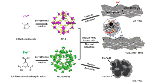 Engineering Fe-Fe3C@Fe-N-C Active Sites and Hybrid Structures from Dual Metal-Organic Frameworks for Oxygen Reduction Reaction in H2-O2 Fuel Cell and Li-O2 Battery