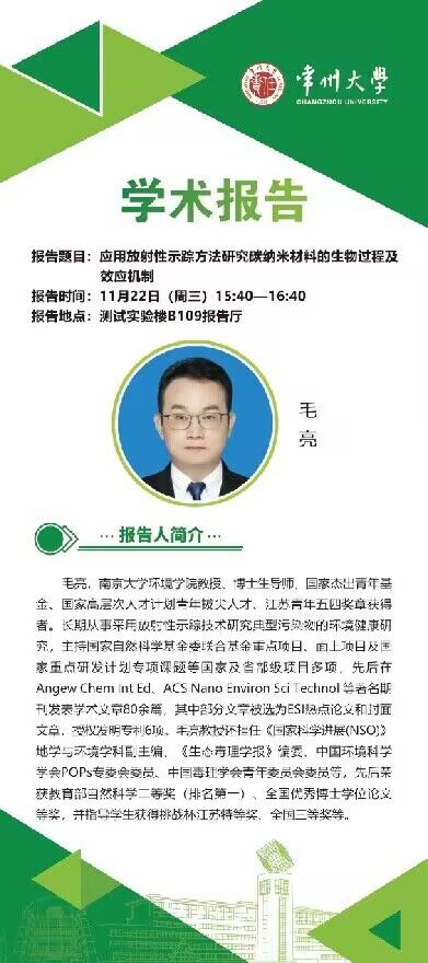 【學(xué)術(shù)報告】11月22日學(xué)術(shù)報告——毛亮教授,南京大學(xué)環(huán)境學(xué)院