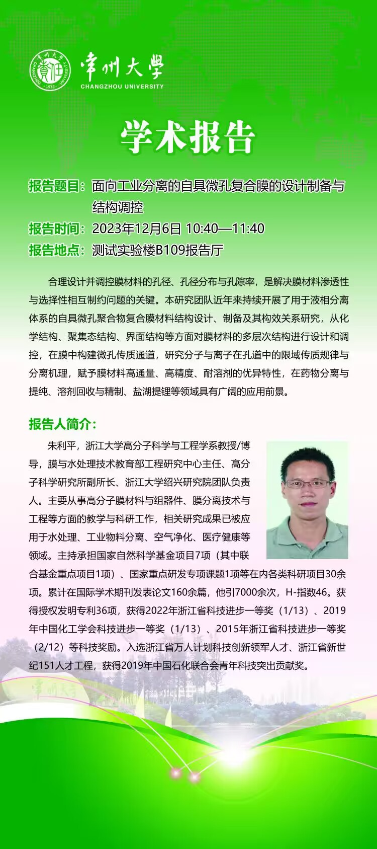 【學術(shù)報告】12月6日學術(shù)報告——朱利平教授,浙江大學